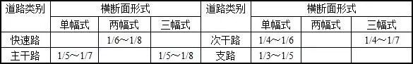 表6 单侧人行道宽度与道路总宽度之比值参考表