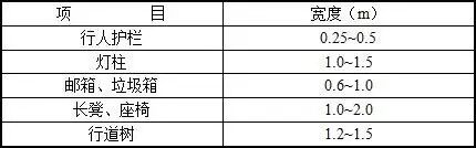 3 设施带是指在道路两侧为护栏、灯柱、标志牌等公共服务设施等提供的场地。不同设施独立设置时占用宽度见表7。