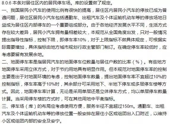 8.0.6.2居住区内地面停车率(居住区内居民汽车的停车位数量与居住户数的比率)不宜超过10%;