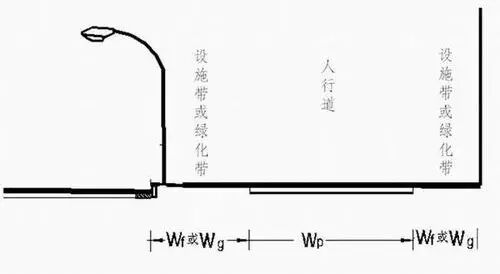 1 人行道宽度指专供行人通行的部分,应满足行人通行的安全和顺畅。人行道宽度按下式计算。