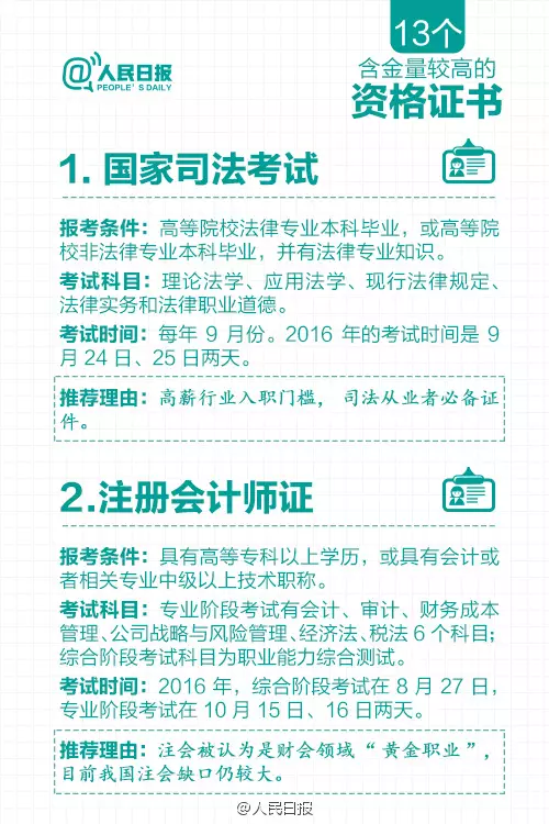 这些资格证书含金量较高