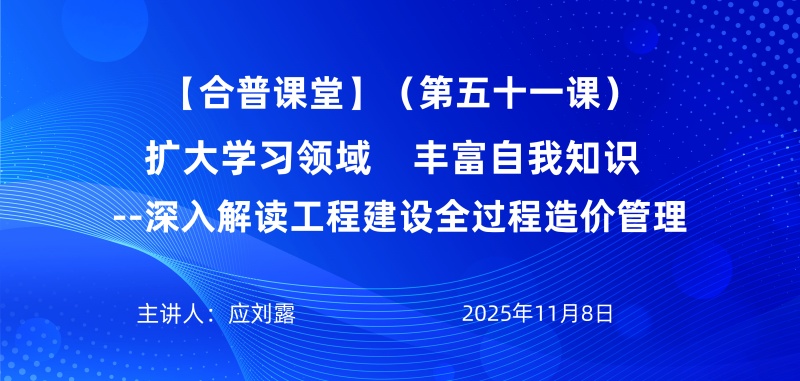11月8日,合普课堂第五十一期专题培训顺利举行。本次课程由集团造价部应刘露担任主讲,以《工程建设全过程造价管理》为主题,为参训员工系统梳理了工程项目从决策到竣工全周期的造价管控要点,带来了一堂内容详实、逻辑清晰的专业提升课。
