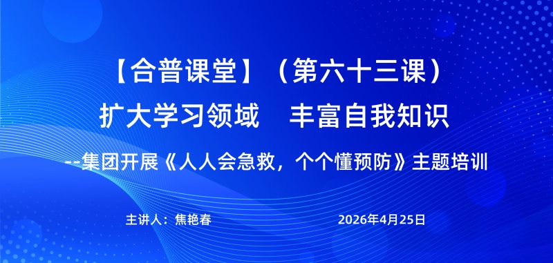 为切实关爱员工身心健康,提升全员急救技能与健康素养,4月25日,合普课堂第63期在集团会议室如期举行。本期课堂特邀合肥市为民健康教育中心副主任讲师焦艳春担任主讲,以“人人会急救,个个懂预防”为主题,为参训人员带来了一场理论与实操相结合的生命安全与健康管理讲座。