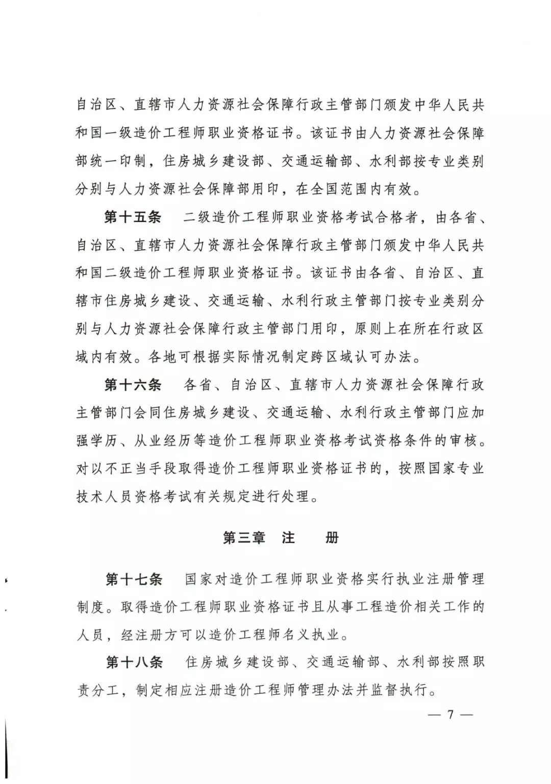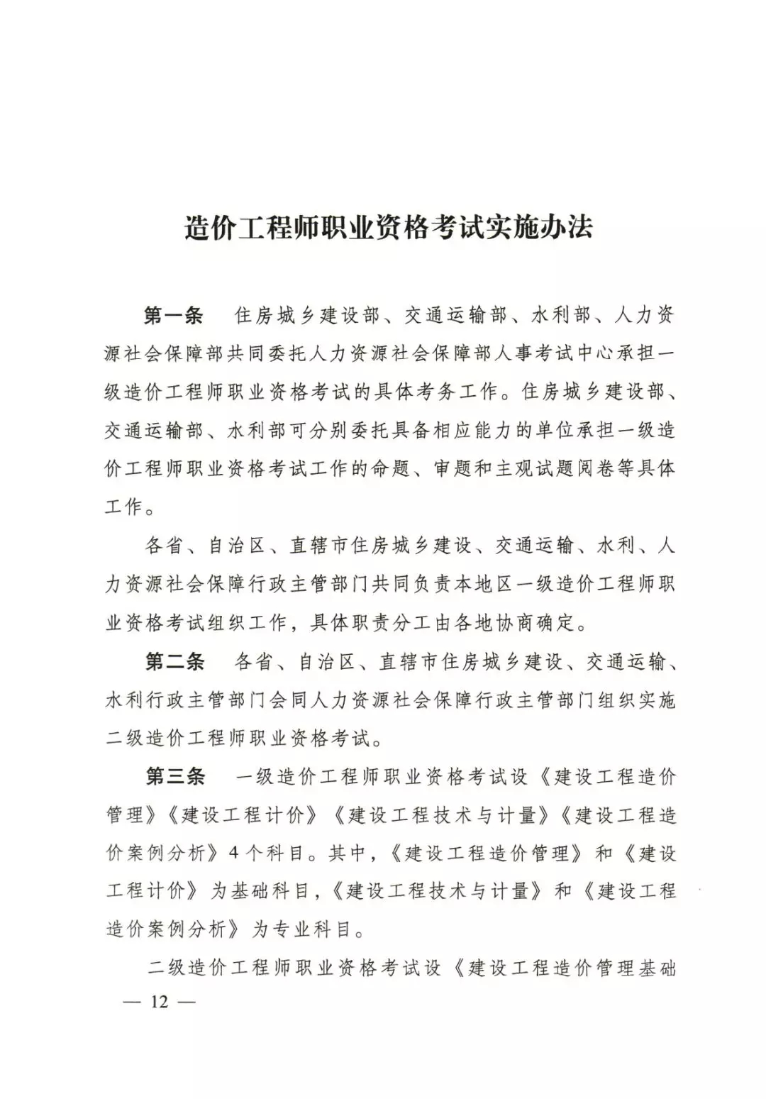 关于印发《造价工程师职业资格制度规定》《造价工程师职业资格考试实施办法》的通知