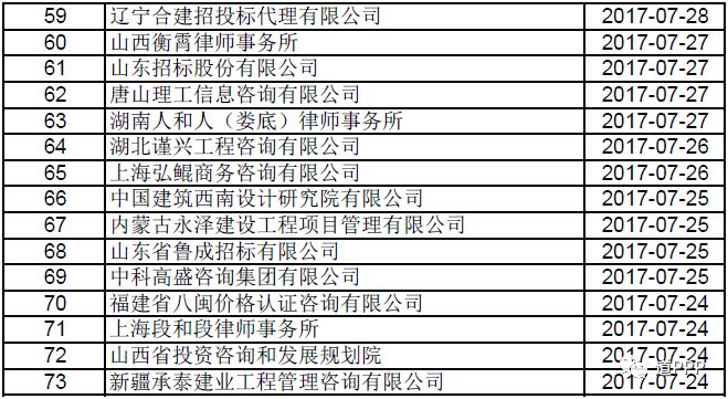 经系统核查,截至2018年8月28日,另有73家入库机构(名单详见附件)超过12个月未更新业绩。请这些机构于本公告起7日内尽快更新项目业绩,且所更新业绩应符合《办法》规定;逾期未更新的,将按《办法》规定清退出库,清退后两年内不得重新入库。