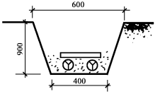 V=S L,两根电缆每1 m沟长,V=0.45 m 每增加一根电缆,每1m沟增加0.153m3。