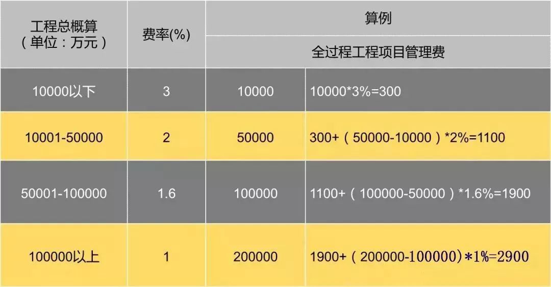 3、在各专业服务费的基础上,另行计取综合的项目管理费用。