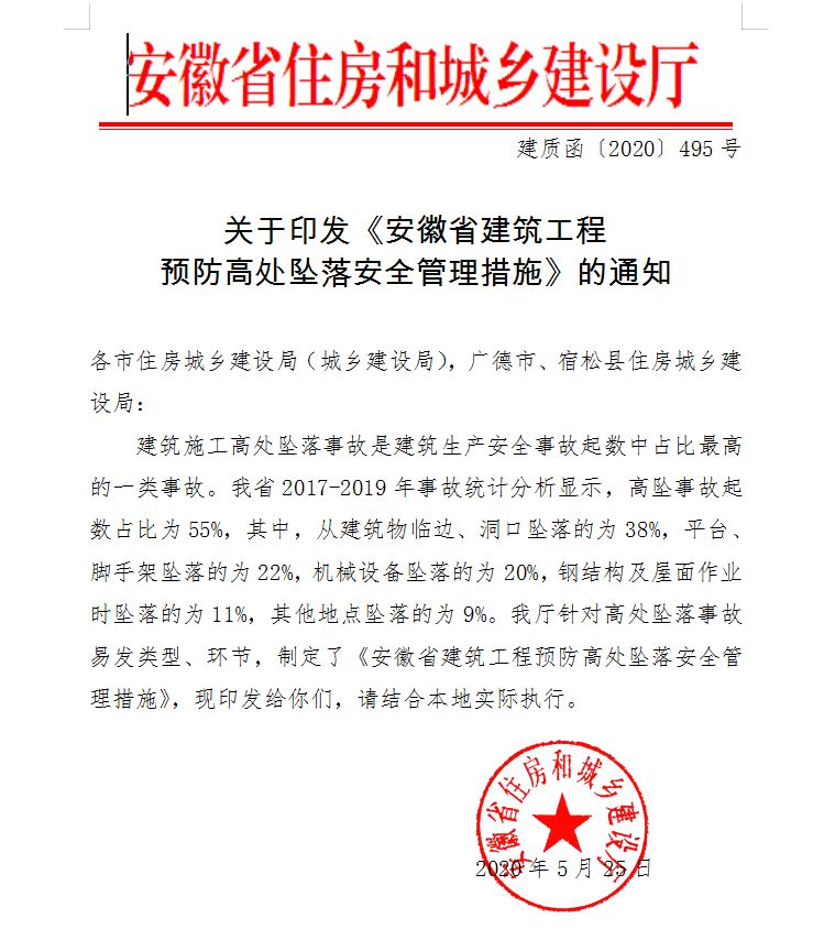 附件:安徽省建筑工程预防高处坠落安全管理措施