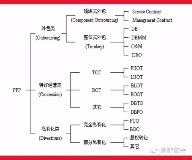 参考世界银行和加拿大PPP国家委员会等的分类方式,结合国内目前的应用现状,笔者认为PPP可以按如下三级结构的方式进行分类: