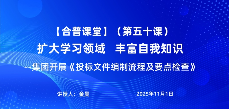 近日,合普课堂第五十期专题培训在集团内部成功举办。本次课堂由经营部金曼担任主讲,以《投标文件编制流程及要点检查》为核心主题,为与会员工带来了一场深入浅出、内容扎实的业务实操培训。