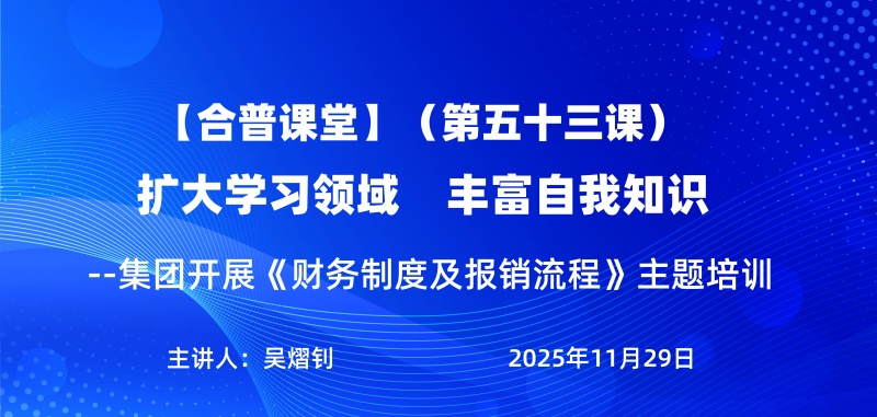 为进一步规范公司财务管理,提升员工报销效率与合规意识,近日,合普课堂第五十三期由集团财务部会计吴熠钊担任主讲,围绕“财务制度及报销流程”开展专题培训,系统讲解了公司费用报销的规范要求与操作细节。