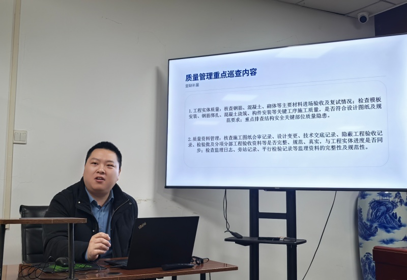 此外,陆垣赤还系统介绍了中心办公室在制定巡查计划、跟踪整改落实、评估监理履职等方面的具体工作流程。他强调,巡查不仅是对工程实体与资料的检查,更是对监理人员履职情况的监督与提升,通过“发现问题—下发整改—复核闭环”的机制,推动各项目质量安全管理水平持续提高。