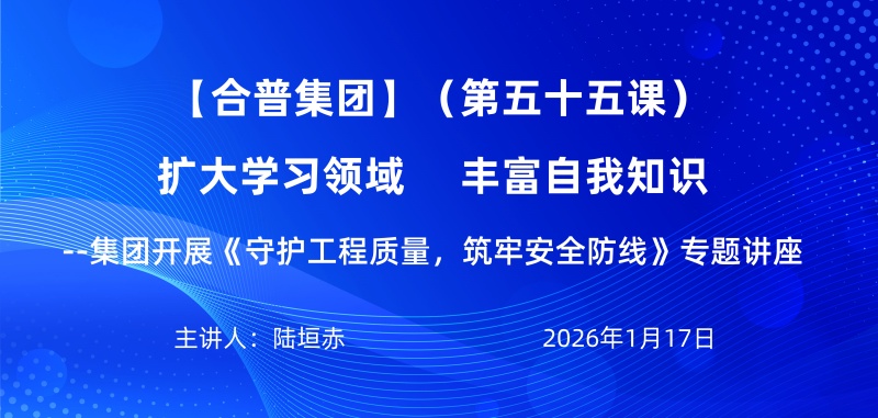 1月17日,“合普课堂”第55期培训在公司会议室顺利举行。本期课程由集团总经理助理兼监理部经理陆垣赤主讲,主题为《守护工程质量,筑牢安全防线——质量安全中心成立的这两三年》。