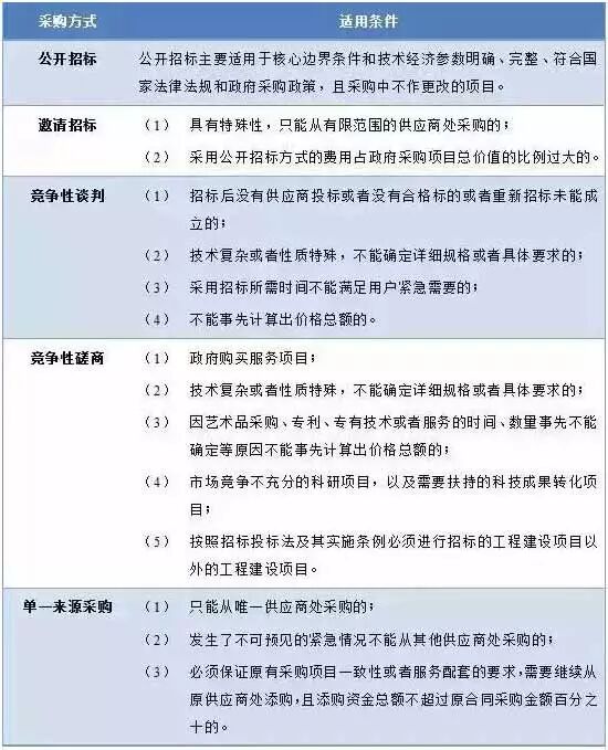 PPP项目五种采购方式的适用条件如下: