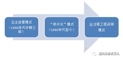 1988年我国开始试点监理制,1996年正式颁布《工程建设监理规定》,实行强制性监理制度。初期,监理职责曾体现出全过程项目管理的特点,即所谓“三控制、两管理、一协调”,初衷是希望在一定程度上代行“业主自管”职能。后来实施中,一方面由于没有坚持国际通行的以设计为主导,使得监理企业技术含量及权威性不足,另一方面由于后来推行造价咨询、招标代理制度,使监理的投资控制和项目管理职能被削弱,逐步导致监理形同虚设,演变成甲方的“质量员”、“安全员”,设计院也只是“画图的”,造成了工程咨询服务的制度性分割——这被专业人士称为所谓的工程咨询服务“碎片化”模式。