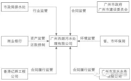 政府部门监管:由广州市建设委员会作为签约主体依据污水处理服务合同对项目公司实施合同监管;市政局排水处及广州污水处理有限公司对项目进行行业监管;省、市环保局对项目建设经营给环境带来的影响进行环境监管。