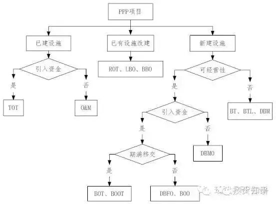 确定PPP项目具体采用哪种运作模式,需根据项目中政府和社会资本方各自所承担的职能和风险来进行科学判定,下面通过决策树来判定PPP项目的具体运作模式,见图1。