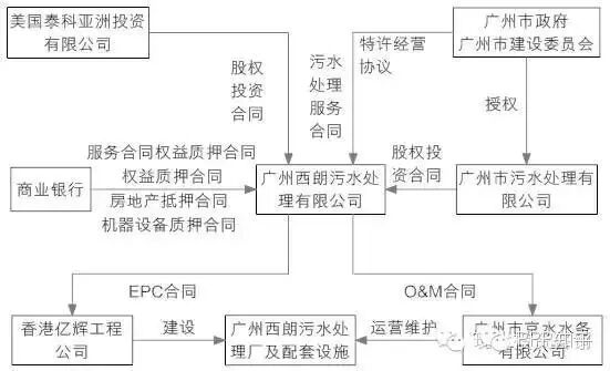 项目主要包括以下几种合同:a.广州市建委代表政府与项目公司签订具有特许经营性质的污水处理服务合同;b.项目公司与投资者签订的股权投资合同;c.项目公司与银行签订的项目抵押贷款合同;d.项目公司与EPC总承包商签订的总承包商合同(EPC合同);e.项目公司与运营商签订的营运和维护合同(O&M合同)。